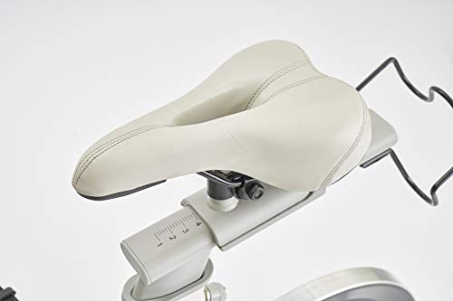 • FEATURES & PERFORMANCE: 32 levels of silent magnetic resistance lets you vary your workout intensity – Handlebar mounted 180 degree rotating console let’s you incorporate off bike exercises – 6” lever makes it easy to adjust the seat position fit any body – Fully adjustable toe cages on the pedals for a secure fit – Extra-large cushioned seat offers comfortable riding – Powder-coat frame for resistance to scratches – Padded handlebars are slip-resistant.