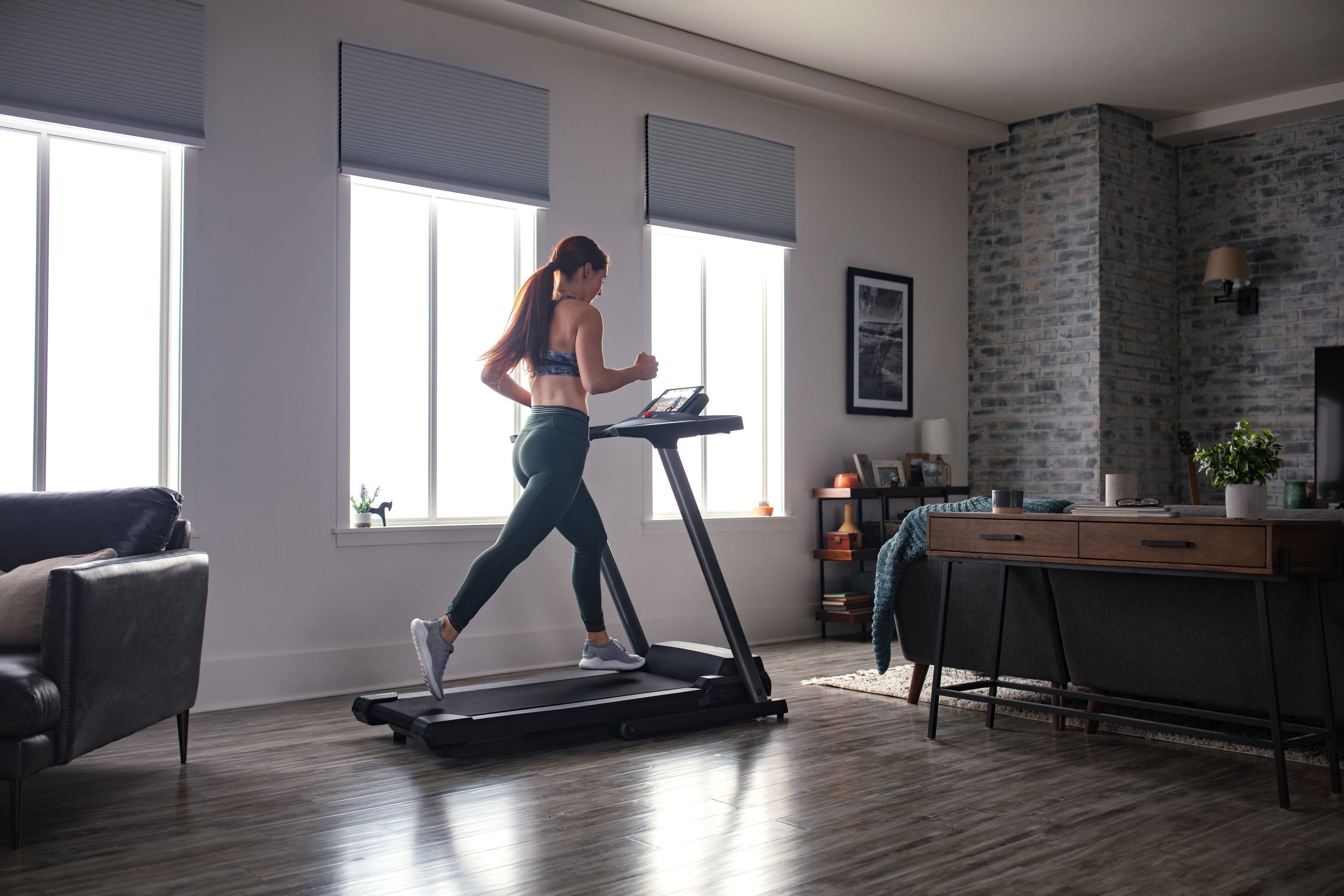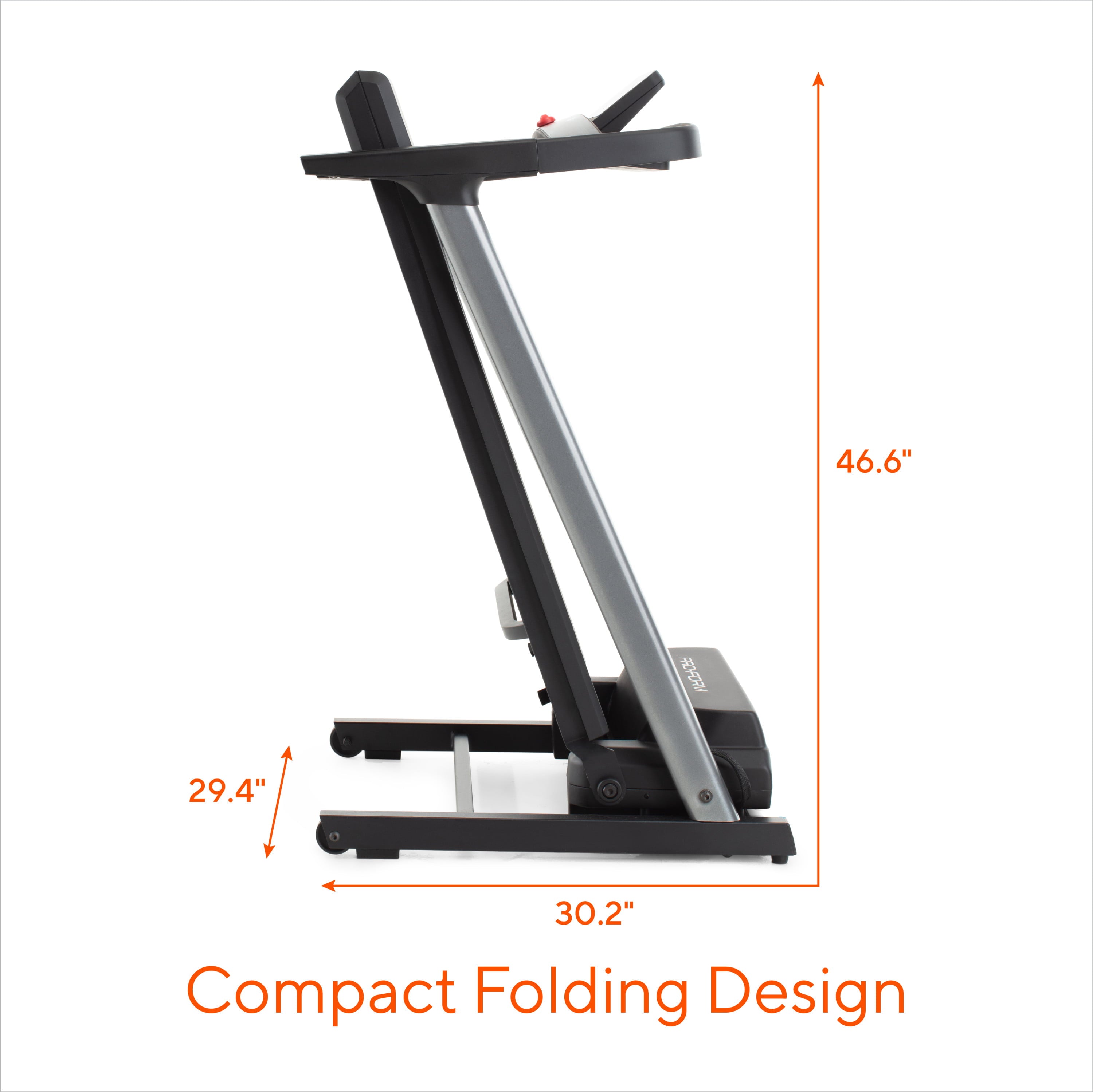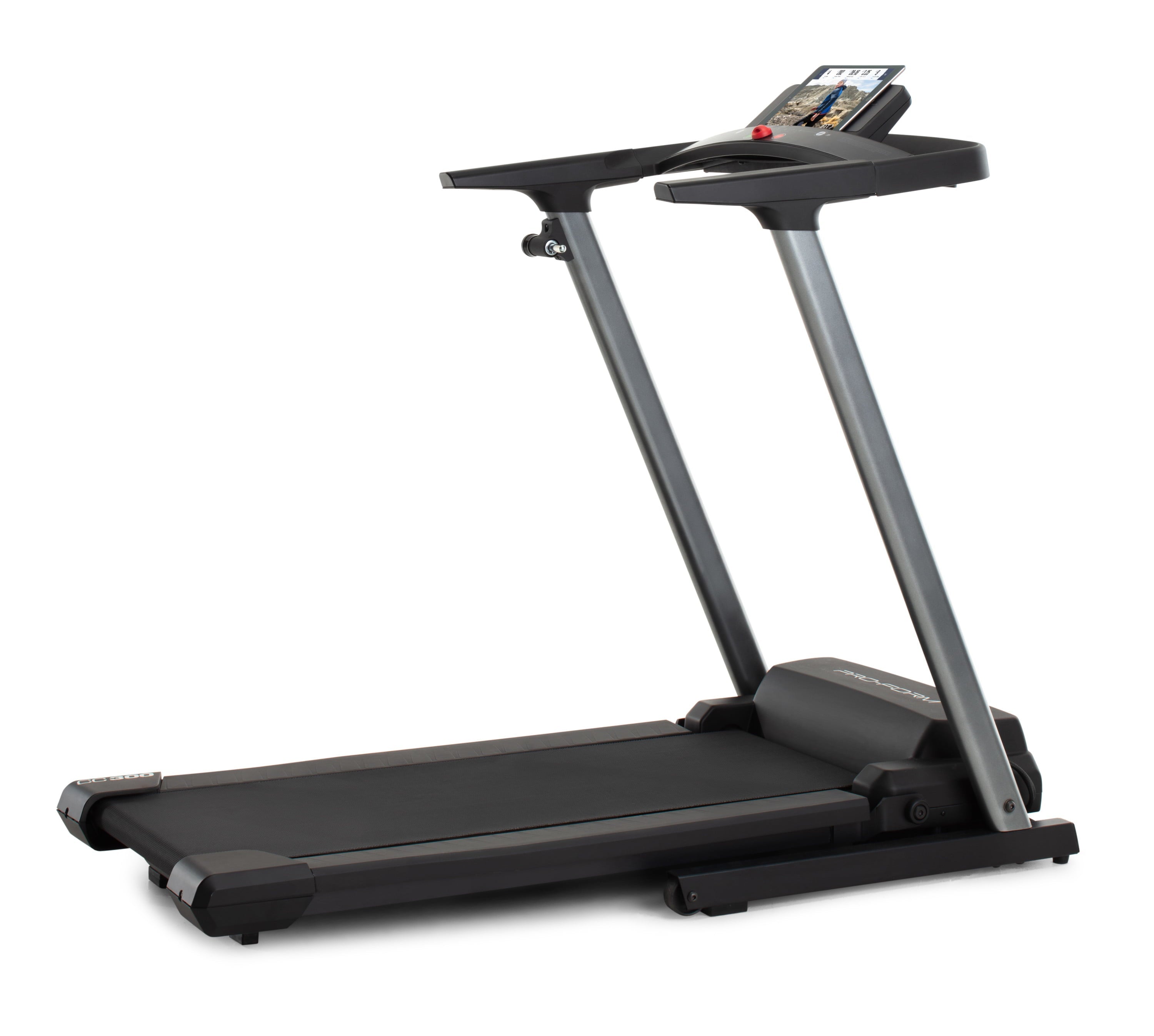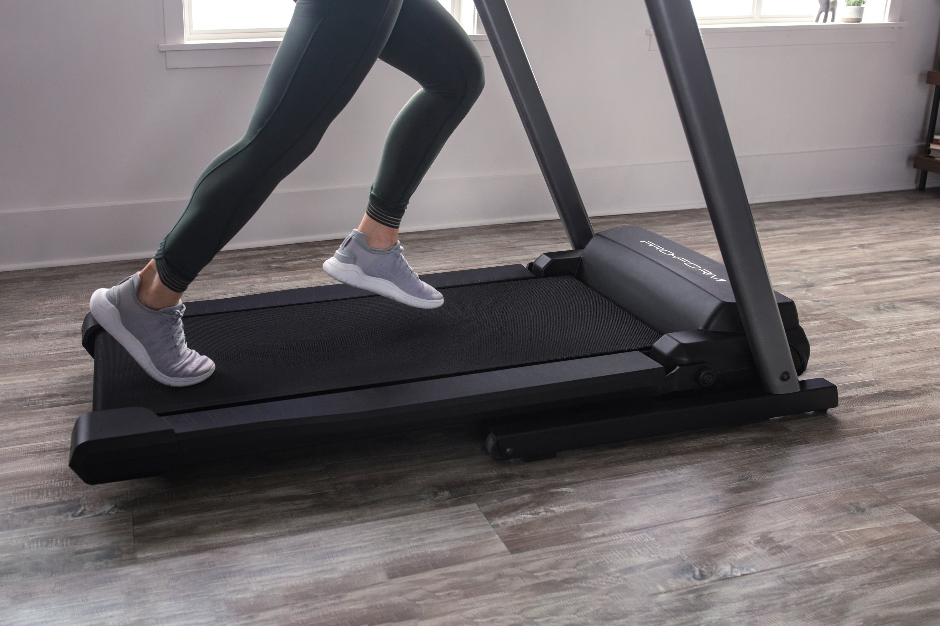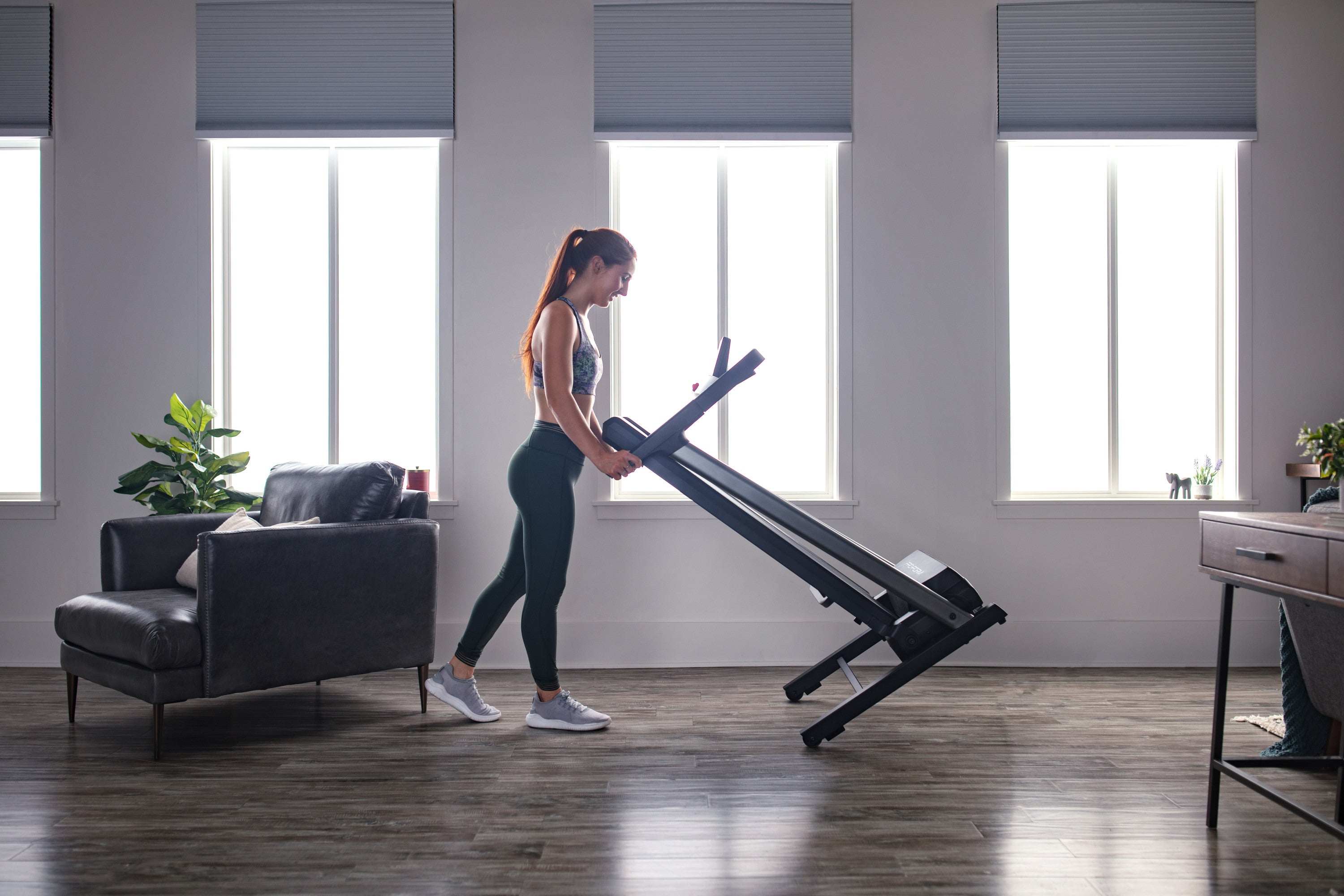 - After your workout, simply fold your treadmill deck up and out of the way for compact, convenient storage