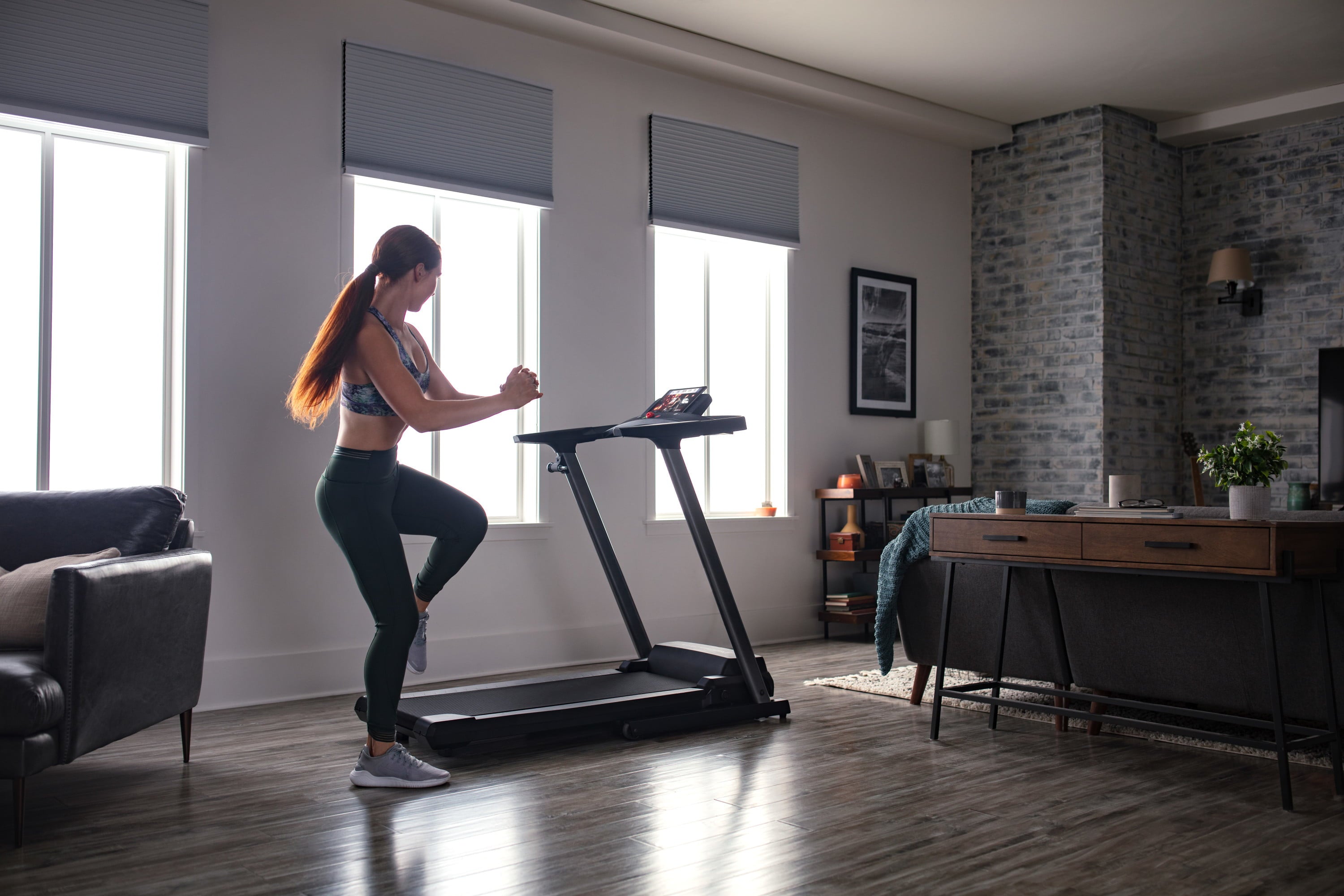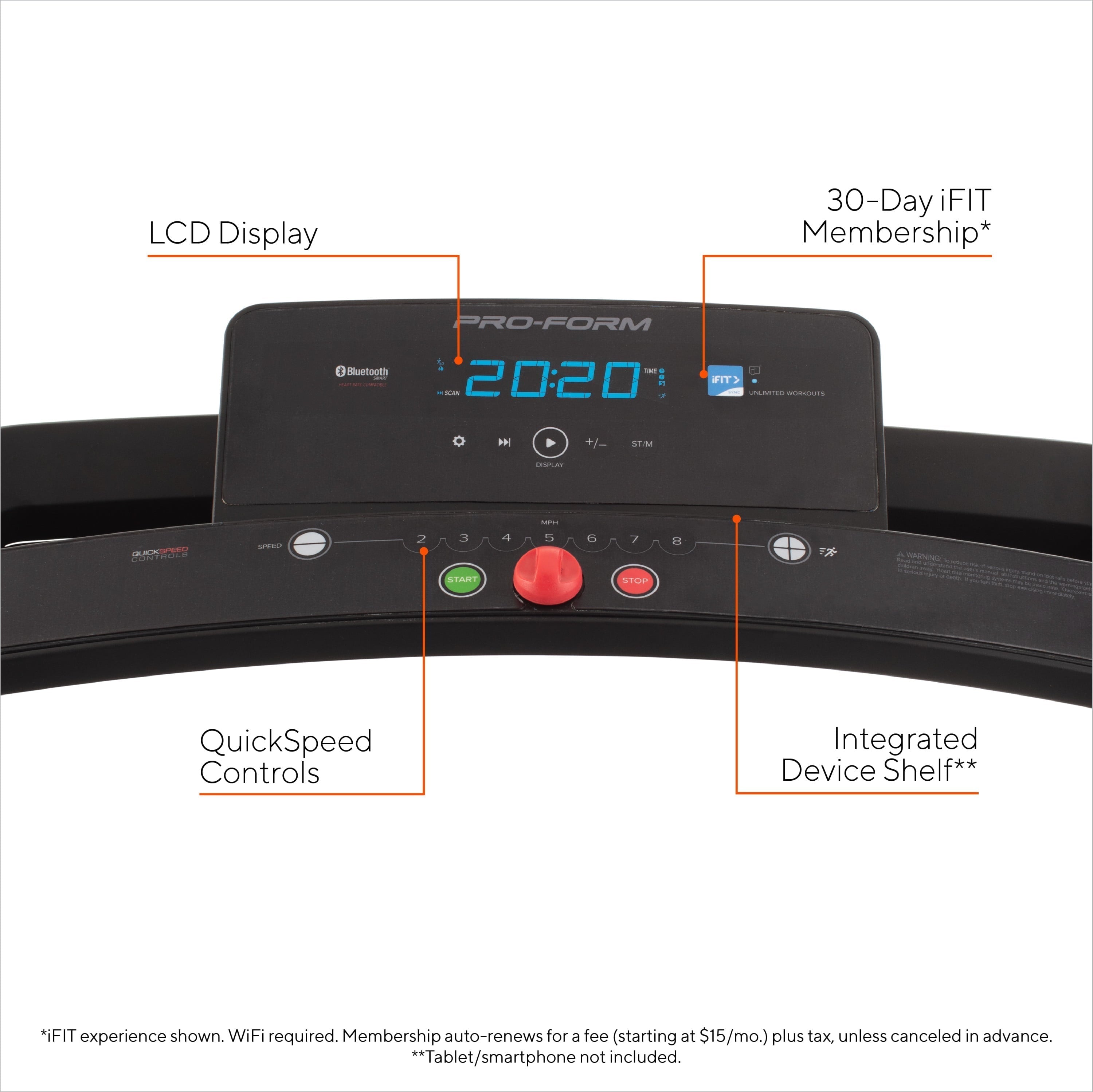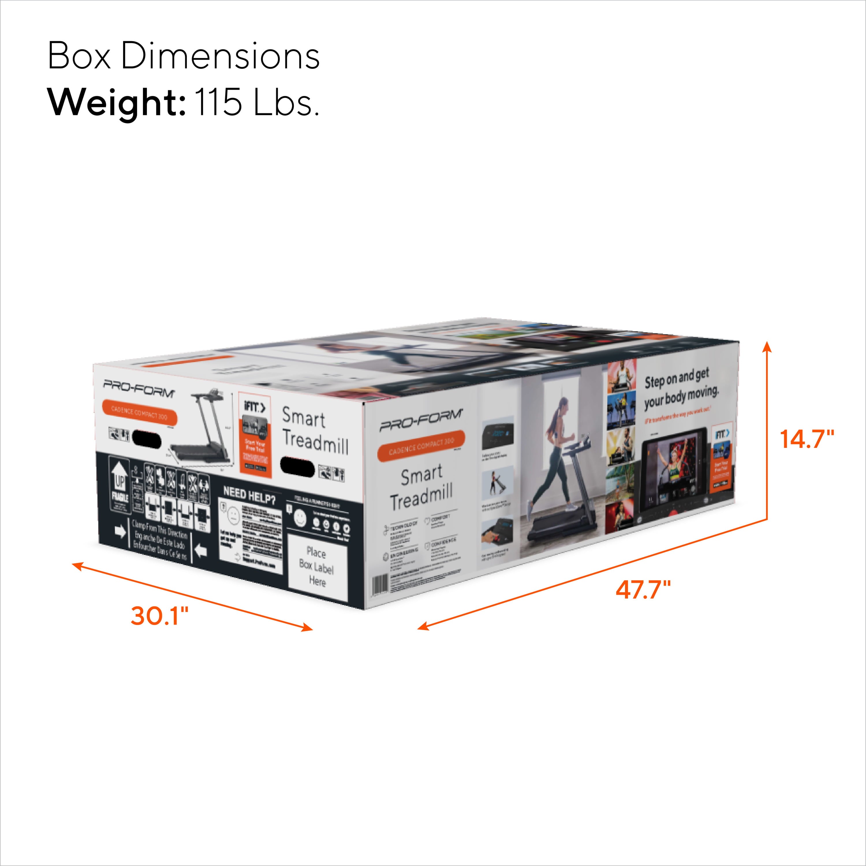 Bring interactive personal training into your living room with the ProForm Cadence WLT folding treadmill. With an included 30-day iFIT membership, you’ll be able to connect your own tablet or smartphone (not included) to your treadmill and experience immersive training sessions led by world-class iFIT Trainers. Transform your living room into a boutique Studio Class where your trainer coaches and motivates you through high-energy workouts, automatically adjusting your speed to optimize your exercise. Choose from a vast library of Global Workouts, embarking on a virtual journey around the world as your iFIT Trainer teaches you and adjusts your machine to mimic real-world terrain for a fully-immersive experience. The Cadence WLT features a Mach Z motor that powers your run and a 16” x 50” tread belt that is recommended for runners under 6 feet tall. View your stats on an easy-to-read LCD display, and when your workout is over you can fold your treadmill deck up and out of the way for convenient storage.