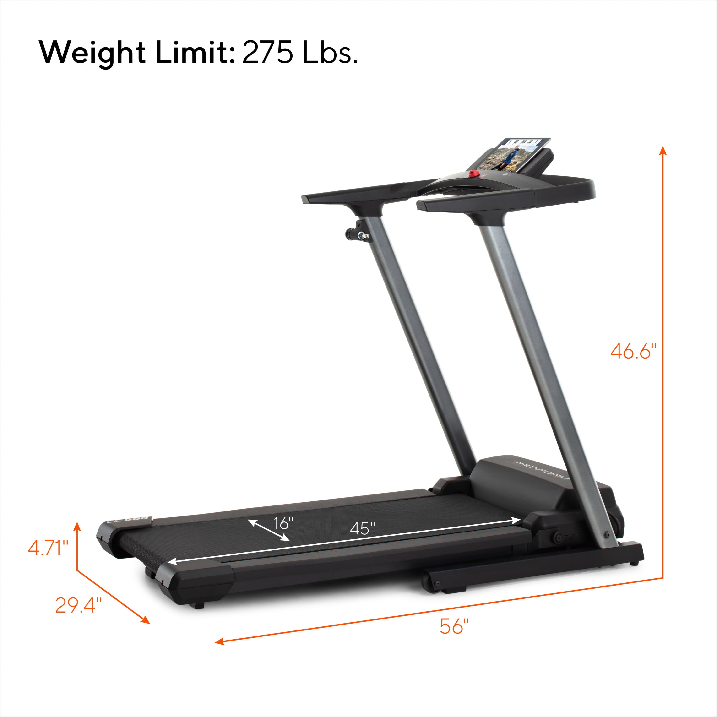 - This space-savvy tread belt is recommended for runners under 6 feet tall
